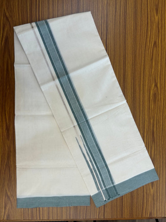 20% Discount ! Kaitharikada Balaramapuram 100% Pure Cotton Double Off white (Unbleached) Mundu/Dhoti - 100x80 - 1.25 inch Silver Kasav Green Shaded Stripes Chutty Kara 4 mtr (8.5 muzham) - 34 KK5283 PMC