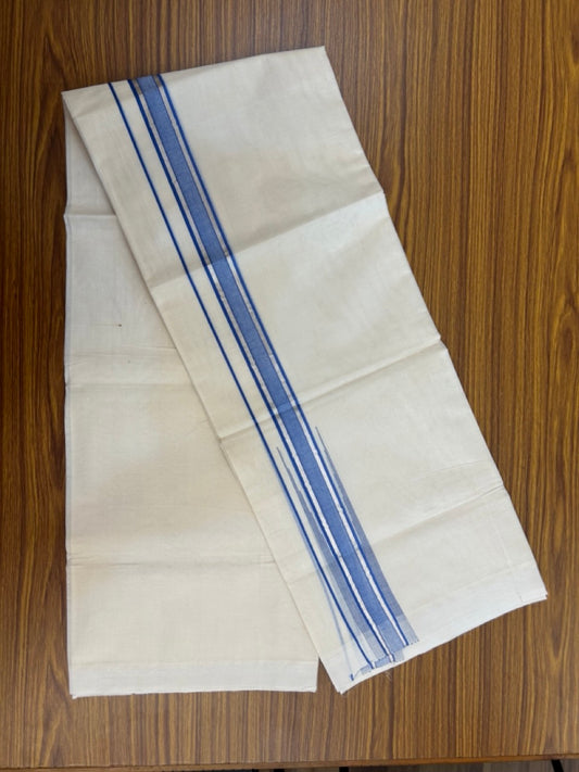 20% Discount! KaithariKada Balaramapuram 100% Cotton Double off white (Unbleached) Mundu/Dhoti - 100X80 - 1.5 inch Silver kasavu & Light Blue striped chutty - 4 mtr (8.5 Muzham) - 42 KK5283 PMC
