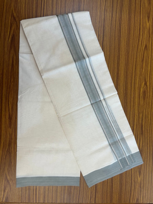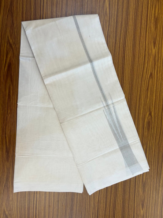 20% Discount! KaithariKada Balaramapuram 100% Cotton Double off white (Unbleached) Mundu/Dhoti - 100X80 - 1.5 inch Silver kasavu & Grey shaded striped chutty - 4 mtr (8.5 Muzham) - 39 KK5283 PMC