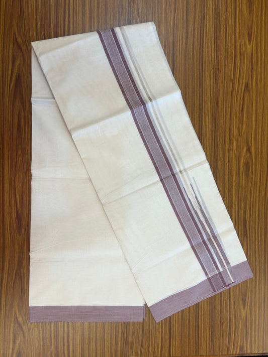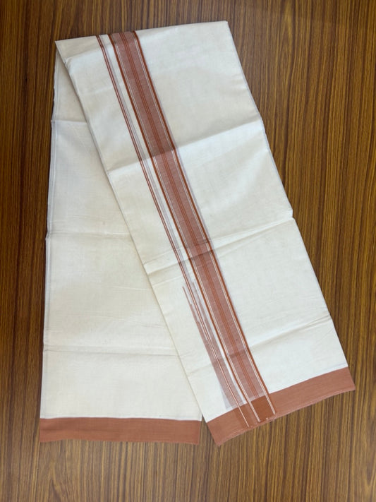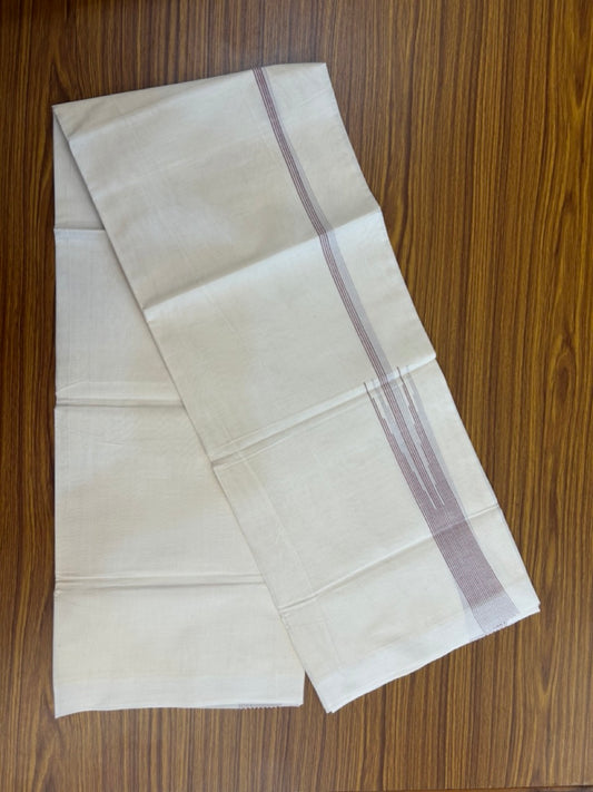 20% Discount! KaithariKada Balaramapuram 100% Cotton Double off white (Unbleached) Mundu/Dhoti - 100X80 - 1.5 inch Silver kasavu & Brown shaded striped chutty - 4 mtr (8.5 Muzham) - 38 KK5283 PMC