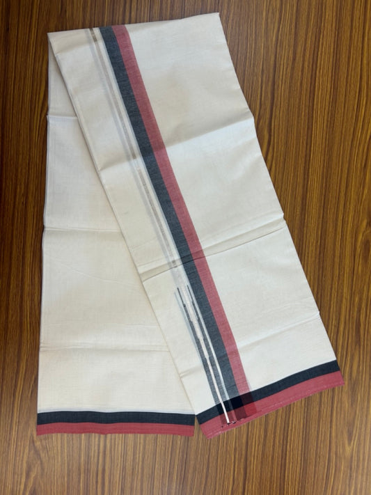 20% Discount ! Kaitharikada Balaramapuram 100% Pure Cotton Double Off white (Unbleached) Mundu/Dhoti - 100x80 - 1.5 inch Silver Kasav Black & Maroon Shaded Stripes Chutty Kara 4 mtr (8.5 muzham) - 32 KK5283 PMC