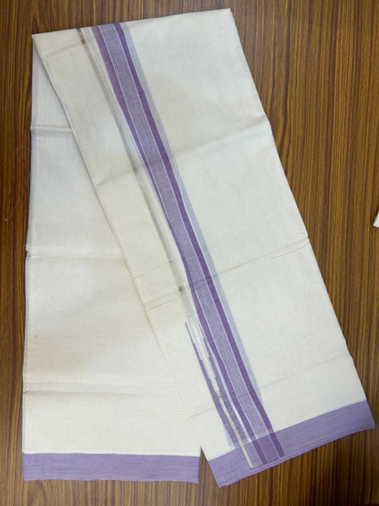 20% Discount ! Kaitharikada Balaramapuram 100% Pure Cotton Double Off white (Unbleached) Mundu/Dhoti - 100x80 - 1.25 inch Silver Kasav Lavender Shaded Stripes Chutty Kara 4 mtr (8.5 muzham) - 35 KK5283 PMC