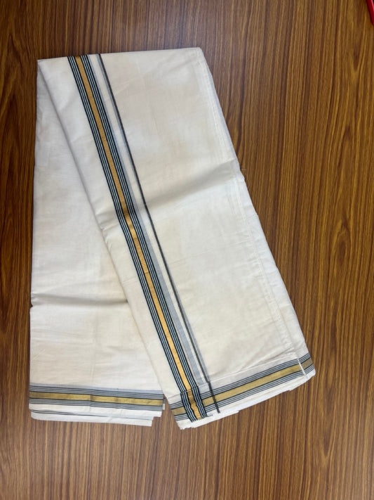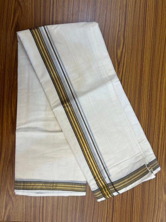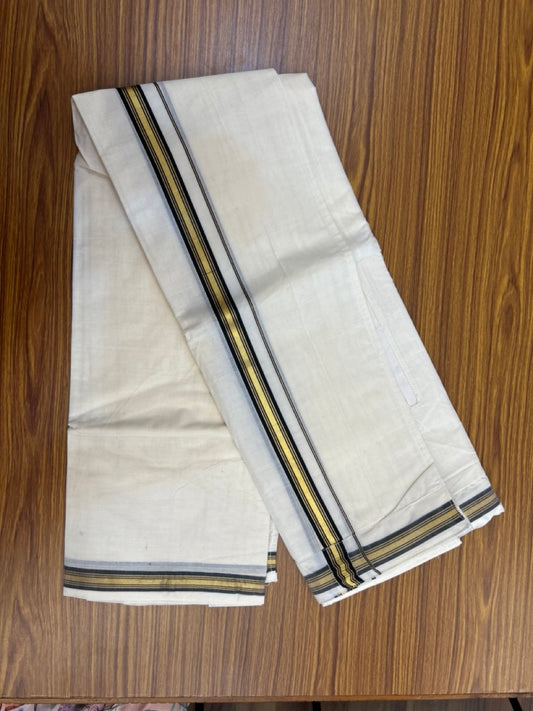 20% Discount ! KaithariKada Balaramapuram Mixed Cotton Double Off white - (Ubleached) Mundu/Dhoti VELCRO Mundu/Dhoti - (80s) - 1 inch Gold Kasavu & Black Striped kara 4mtr (8.5 muzham) - 6 KK5284 PMC