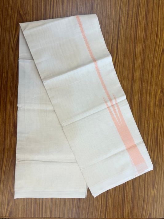 20% Discount! KaithariKada Balaramapuram 100% Cotton Double off white (Unbleached) Mundu/Dhoti - 100X80 - 1.5 inch Light Orange Striped chutty Kara 4 mtr (8.5 Muzham) - 52 KK5283 PMC