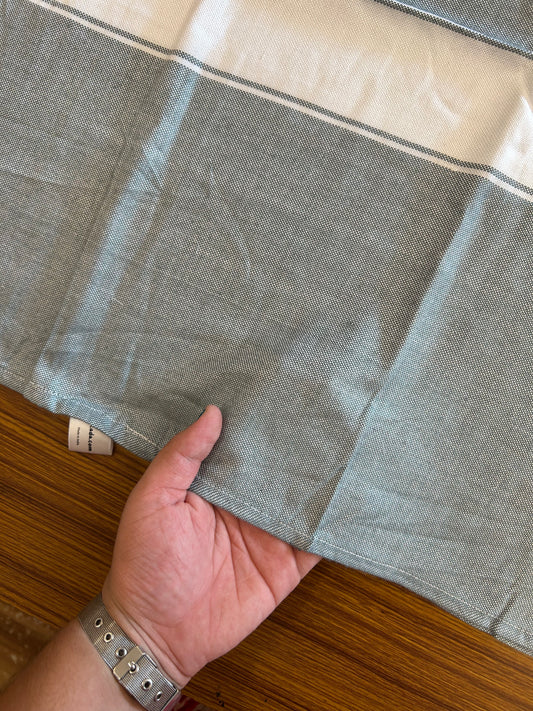 Bamboo Towel - Kaitharikada - 2.75 inch Pure Bamboo - White Striped Border with Greenish Turquoise Colour Body - 1.61 X 79 cm - 9 KK51201 MR