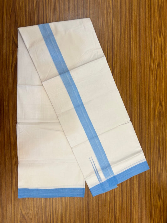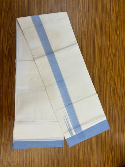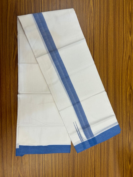 20% Discount ! Kaitharikada Balaramapuram 100% Cotton Pure White Double Mundu/Dothi - 100x80 - 1.5 inch Puliyilakkara Sky Blue Chutty Kara 3.90 mtr (8 muzham) - 91 KK5285 VAS