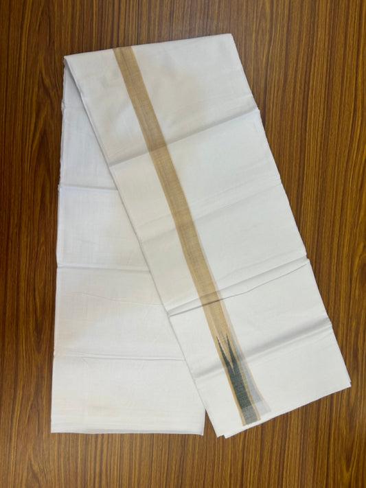 20% Discount ! Kaitharikada Balaramapuram 100% Cotton Pure White Double Mundu/Dothi - 100x80 - 1 inch Puliyilakkara Silver Kasav & Green Chutty Kara 3.90 mtr (8 muzham) - 101 KK5285 VAS