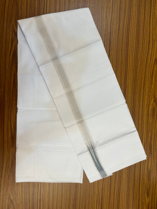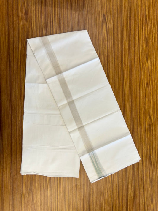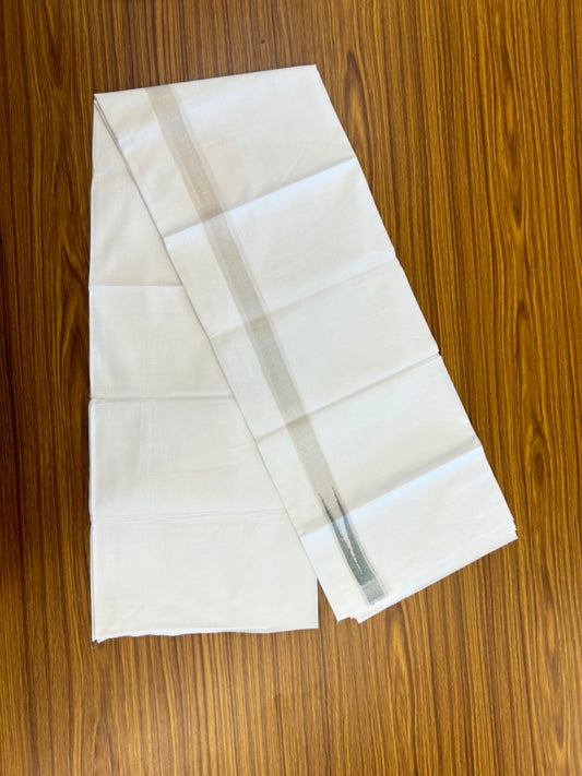 20% Discount ! Kaitharikada Balaramapuram 100% Cotton Pure White Double Mundu/Dothi - 100x80 - 1 inch Puliyilakkara Silver Kasav & Light Green Chutty Kara 3.90 mtr (8 muzham) - 99 KK5285 VAS