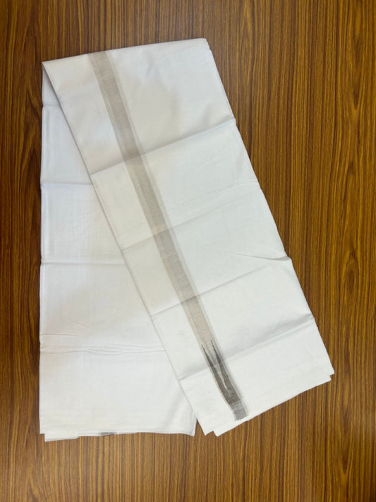 20% Discount ! Kaitharikada Balaramapuram 100% Cotton Pure White Double Mundu/Dothi - 100x80 - 1 inch Puliyilakkara Silver Kasav & Brown Chutty Kara 3.90 mtr (8 muzham) - 98 KK5285 VAS