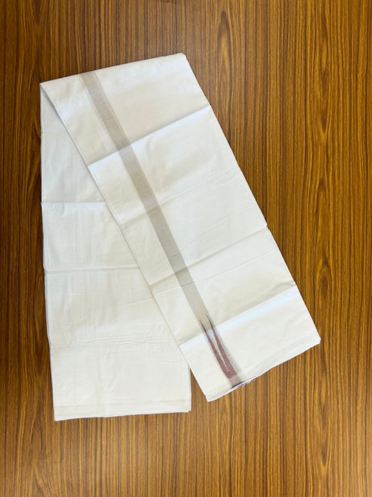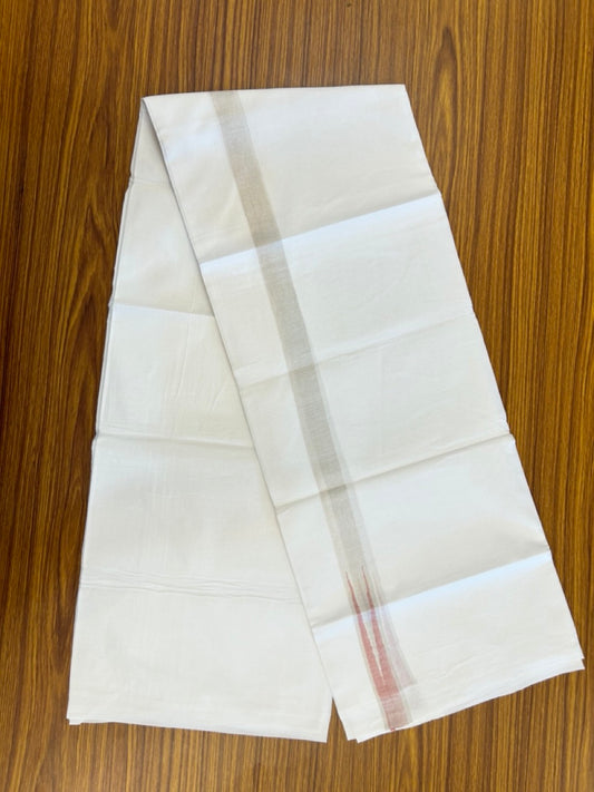 20% Discount ! Kaitharikada Balaramapuram 100% Cotton Pure White Double Mundu/Dothi - 100x80 - 1 inch Puliyilakkara Silver Kasav & Maroon Chutty Kara 3.90 mtr (8 muzham) - 100 KK5285 VAS