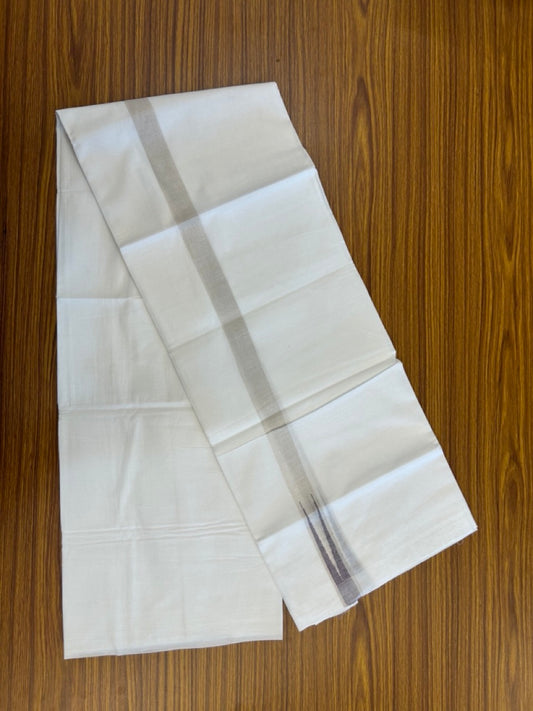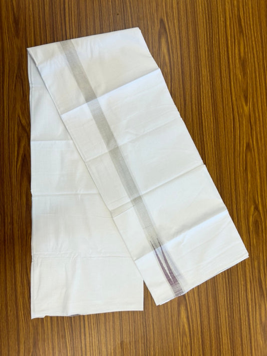 20% Discount ! Kaitharikada Balaramapuram 100% Cotton Pure White Double Mundu/Dothi - 100x80 - 1 inch Puliyilakkara Silver Kasav & Purple Chutty Kara 3.90 mtr (8 muzham) - 104 KK5285 VAS