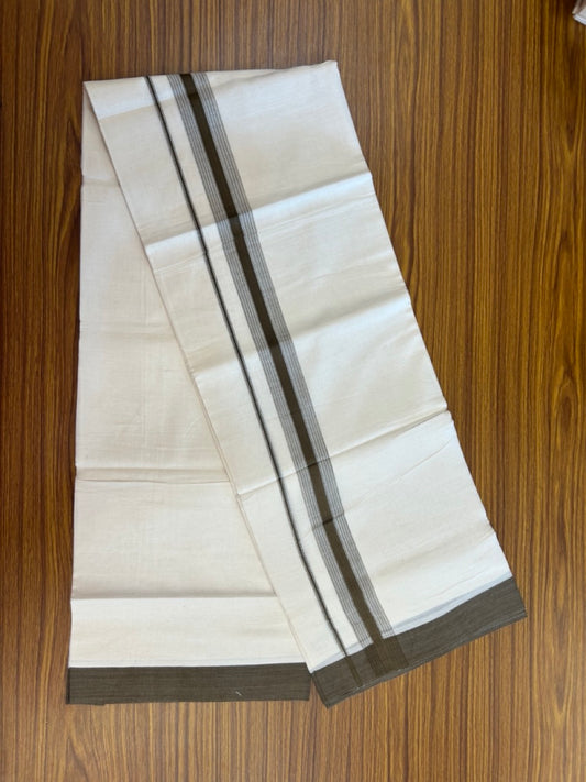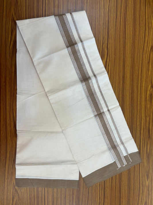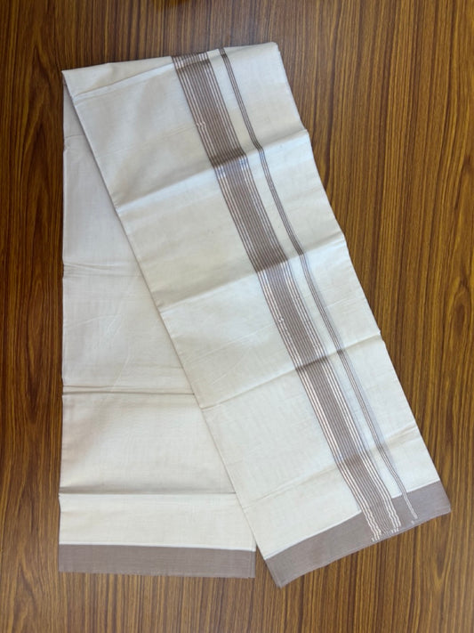 20% Discount! KaithariKada Balaramapuram Double Off White Mundu/Dhoti - 80x80 - 1.5 Inch Silver Kasavu & Light Brown striped Kara - 3 KK5285 VAS