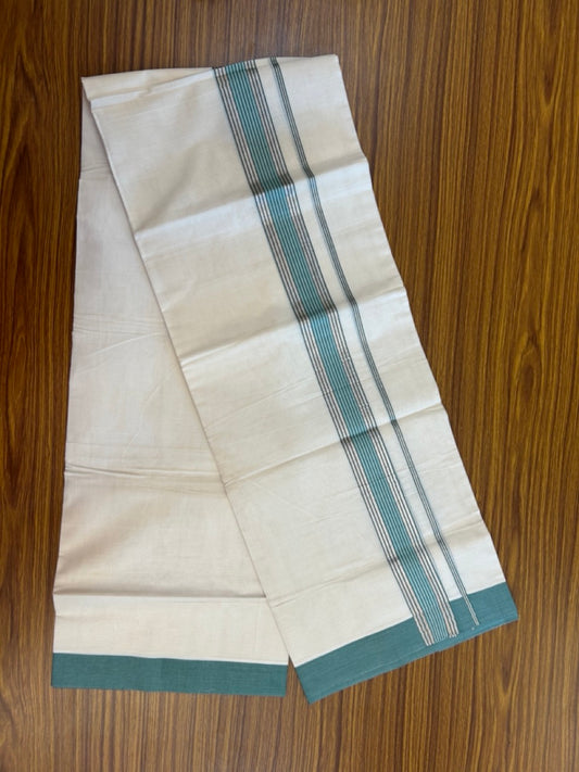 20% Discount! KaithariKada Balaramapuram Double Off White Mundu/Dhoti - 80x80 - 1.5 Inch Silver Kasav & Light Teal Green striped Kara - 5 KK5285 VAS