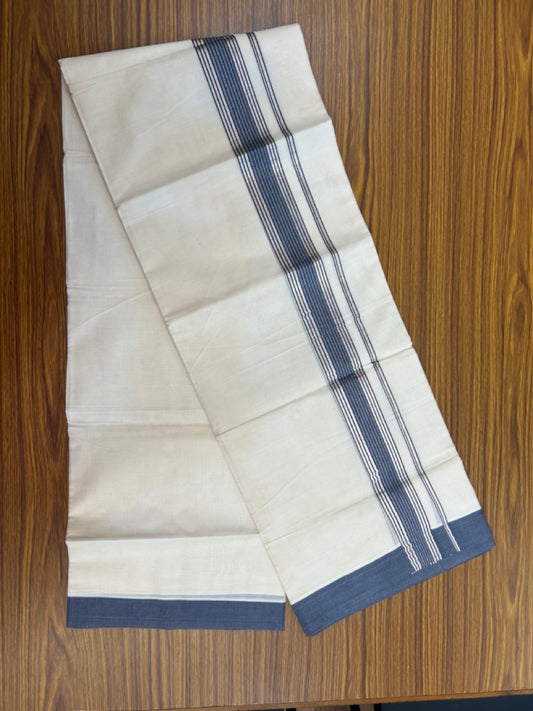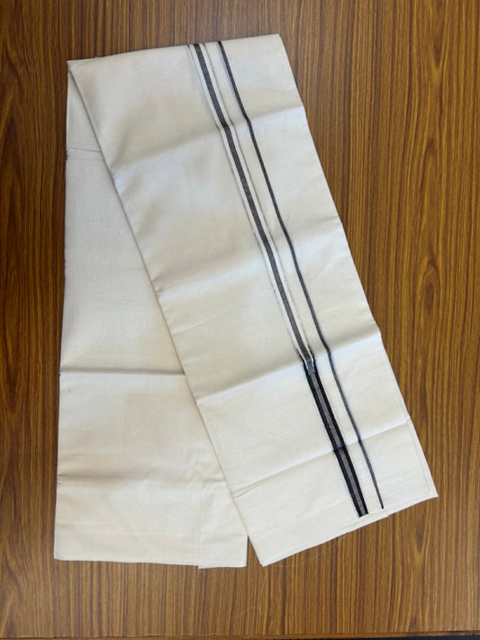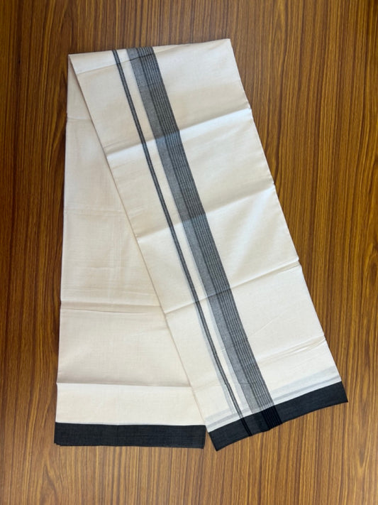 20% Discount! KaithariKada Balaramapuram Double Off White Mundu/Dhoti - 100x80 - 1.5 Inch Black Shaded striped Kara - 17 KK5285 VAS