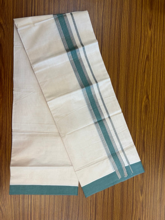 20% Discount! KaithariKada Balaramapuram Double Off White Mundu/Dhoti - 80x80 - 1.5 Inch Silver Kasav & Teal Green striped Kara - 8 KK5285 VAS