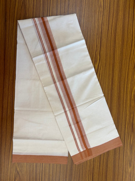 20% Discount! Kaitharikada Balaramapuram Double Off White Mundu/Dhoti - 100x80 - 1.5 Inch Brick Orange striped Kara - 11 KK5285 VAS