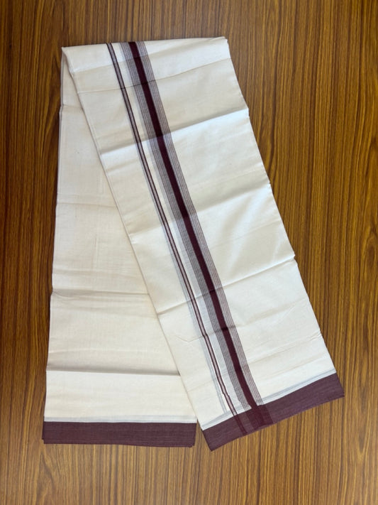 20% Discount! Kaitharikada Balaramapuram Double Off White Mundu/Dhoti - 100x80 - 1.25 Inch Dark Wine Shaded striped Kara - 13 KK5285 VAS