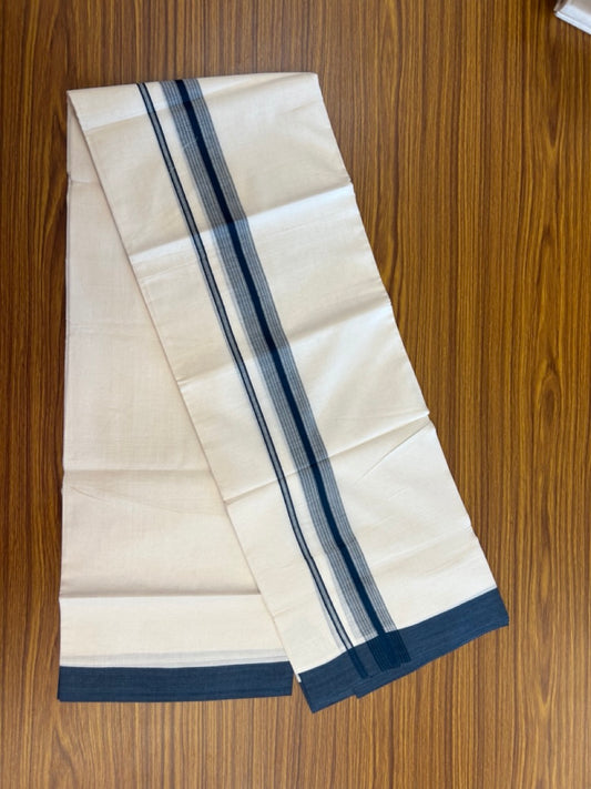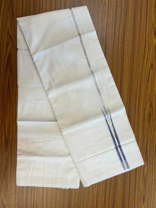 20% Discount! Kaitharikada Balaramapuram Double Off White Mundu/Dhoti - 80x80 - 1.5 Inch Silver Kasav & Navy Blue striped Kara - 6 KK5285 VAS