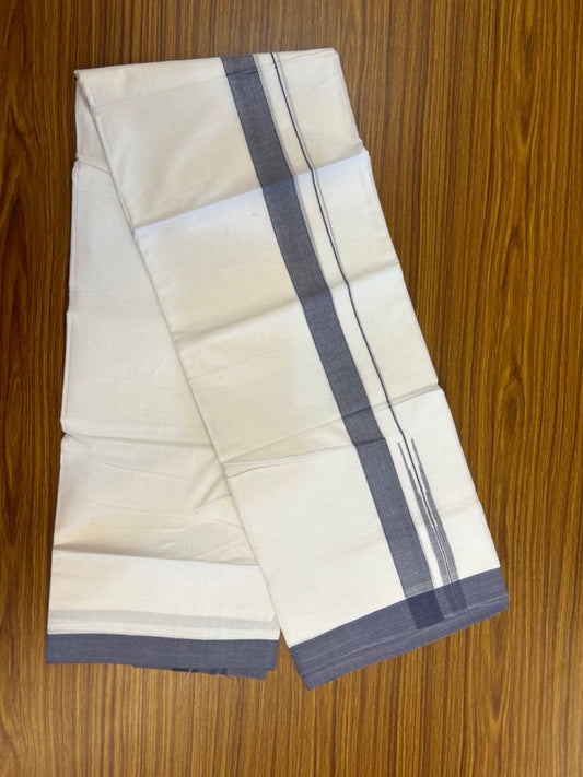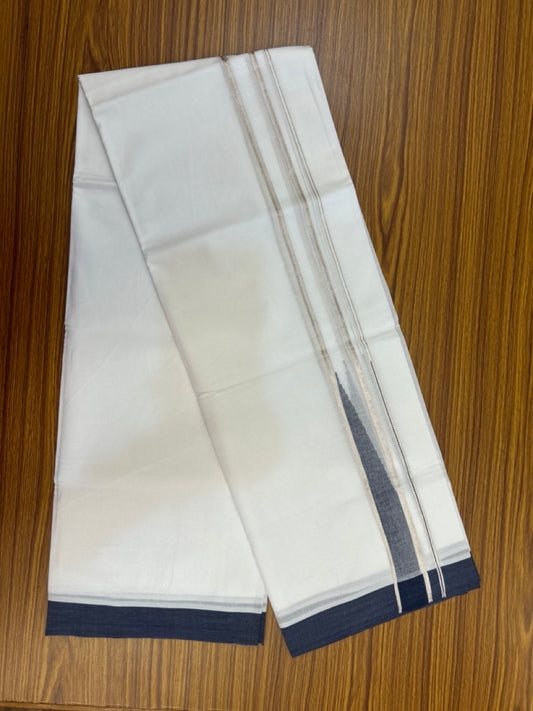 20% Discount! KaithariKada Balaramapuram 100% Cotton Double Pure white Mundu/Dhoti- 100x80 - 1.5 inch Silver & Navy Blue Chutty kara - 3.90mtr ( 8 muzham) - 77 KK5279 CKS
