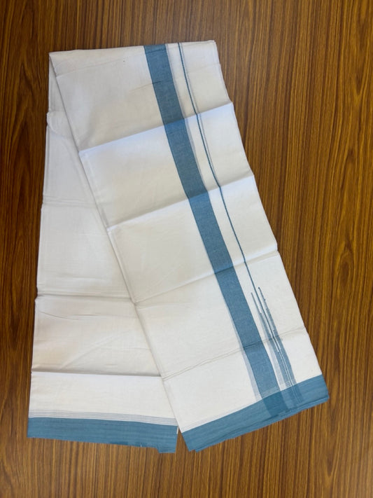 20% Discount! KaithariKada Balaramapuram 100% Cotton Double Pure white Mundu/Dhoti- 60s - 1.25 inch Blue Green shaded chutty kara - 3.90mtr ( 8 muzham) - 28 KK5279 CKS