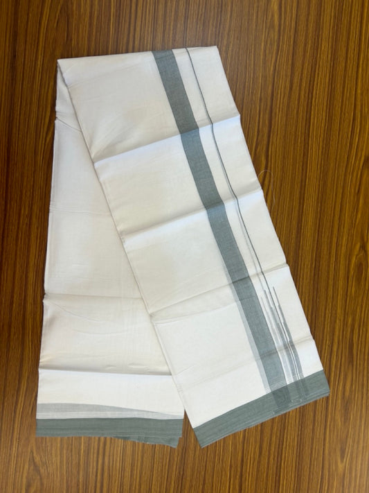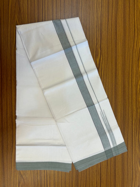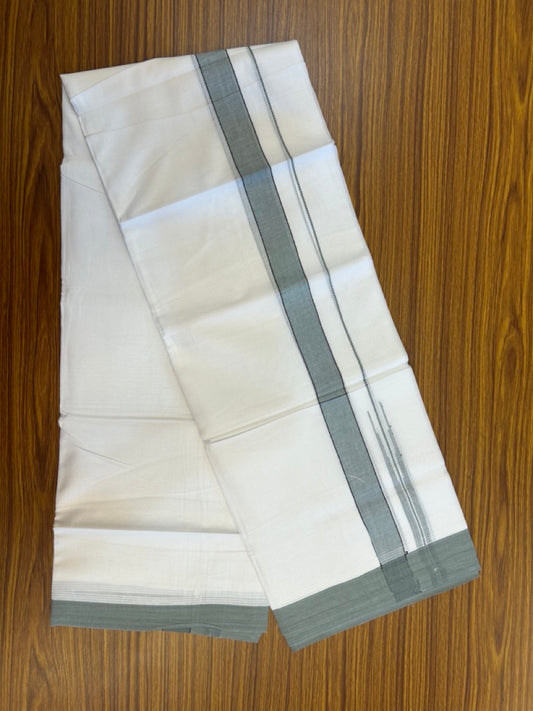 20% Discount! KaithariKada Balaramapuram 100% Cotton Double Pure white Mundu/Dhoti- 60s - 1.25 inch Greyish green shaded chutty kara - 3.90mtr ( 8 muzham) - 29 KK5279 CKS