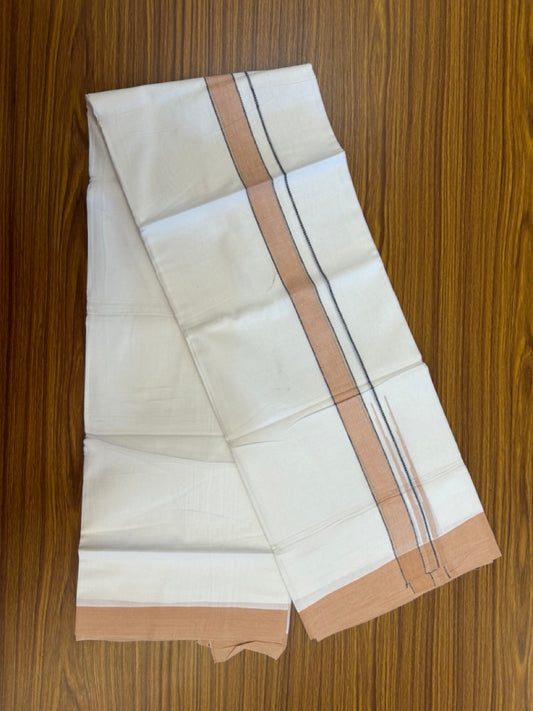 20% Discount ! KaithariKada Balaramapuram 100% Cotton Double Off White - (Unbleached) - Mundu / Dhoti- 100x80 - 1.5 inch Sand Brown shaded striped kara - 3 KK5280 VIN