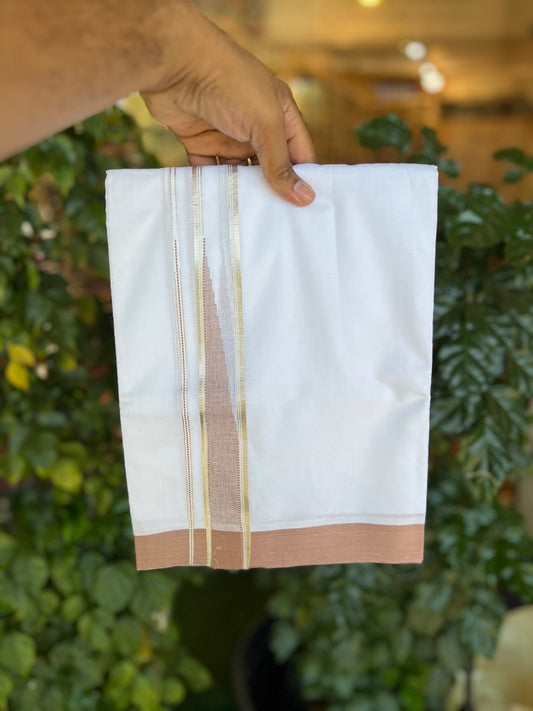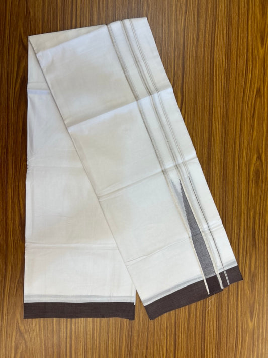 20% Discount! KaithariKada Balaramapuram 100% Cotton Double Pure white Mundu/Dhoti- 100x80 - 1.5 inch Silver & Mocca Brown Chutty kara - 3.90mtr ( 8 muzham) - 78 KK5279 CKS