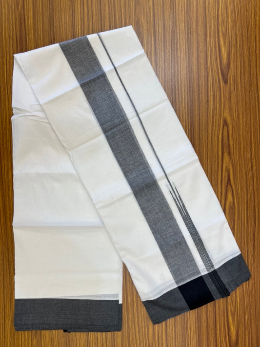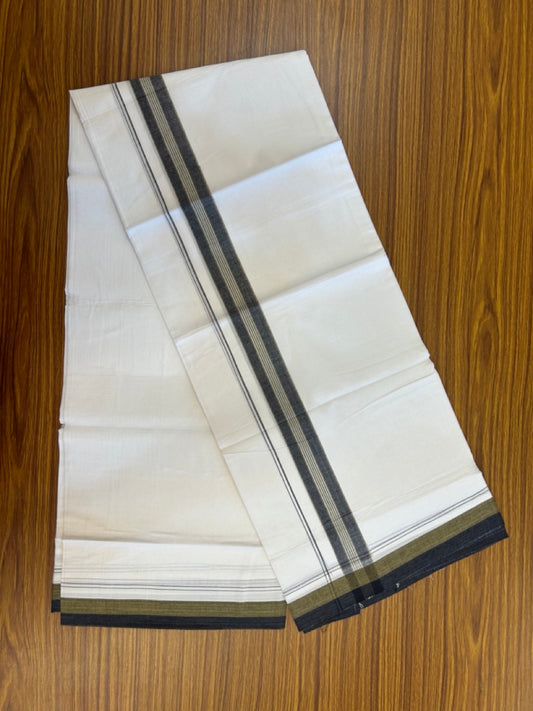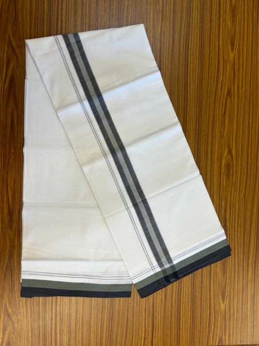 20% Discount! KaithariKada Balaramapuram 100% Cotton Double Pure white Mundu/Dhoti- 60s - 1.25 inch Black striped Greyish green shaded chutty kara - 3.90mtr ( 8 muzham) - 30 KK5279 CKS