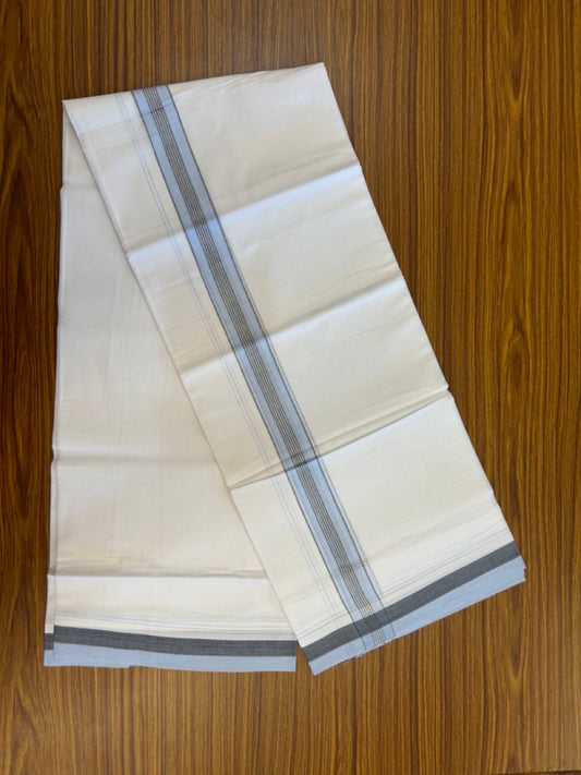 20% Discount ! KaithariKada Balaramapuram 100% Cotton Double Off White - (Unbleached) - Mundu / Dhoti- 100x80 - 1.5 inch Ash Blue shaded striped kara - 1 KK5280 VIN
