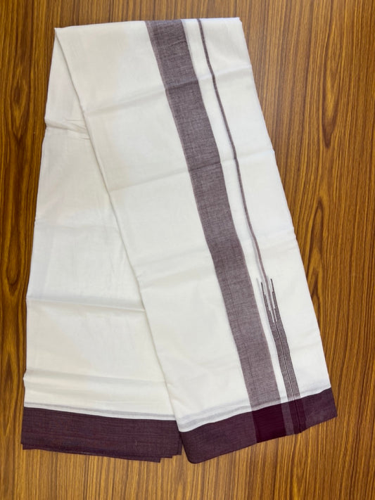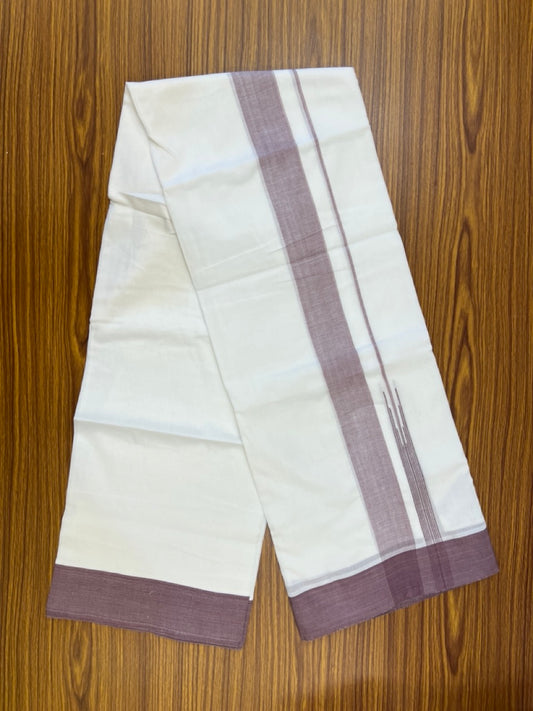 20% Discount! KaithariKada Balaramapuram 100% Cotton Double Pure white Mundu/Dhoti- 60s - 2.25 inch Wine Purple One Side Chutty kara - 3.90mtr ( 8 muzham) - 82 KK5279 CKS
