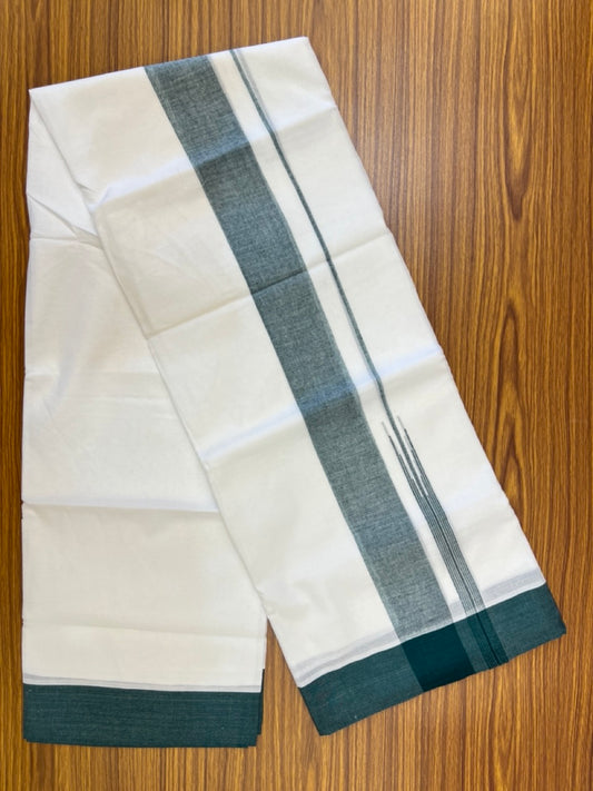 20% Discount! KaithariKada Balaramapuram 100% Cotton Double Pure white Mundu/Dhoti- 60s - 2.25 inch Bottle Green One Side Chutty kara - 3.90mtr ( 8 muzham) - 83 KK5279 CKS
