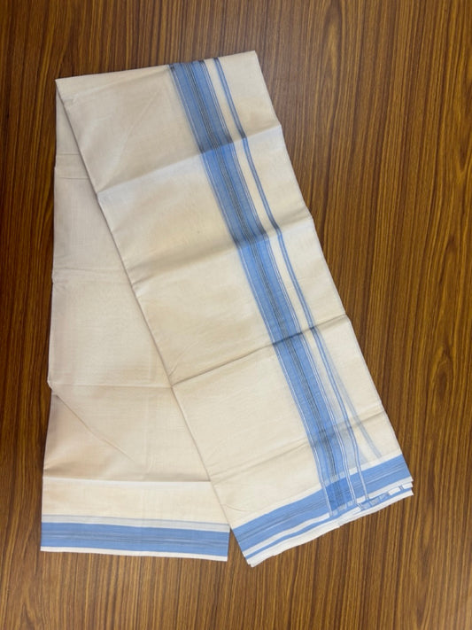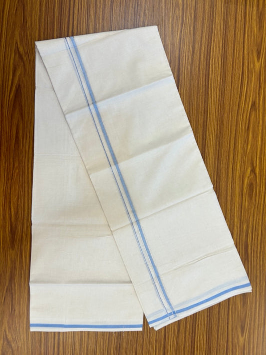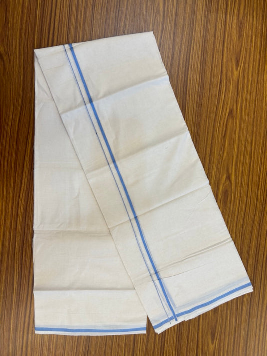 20% Discount ! Kaitharikada Balaramapuram 100% Cotton Off White Double Mundu/Dothi - 100x80- 1.5 Inch Silver Kasav Sky Blue & Black Shaded Kara - 4mtr (8.5muzham)- 7 KK5279 CKS