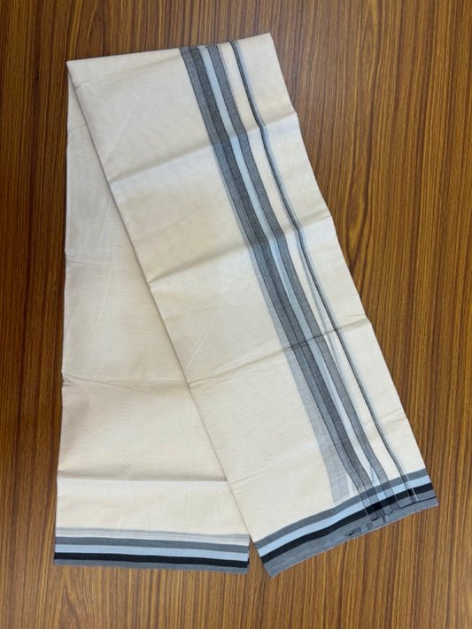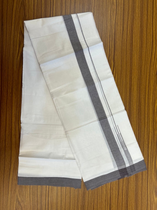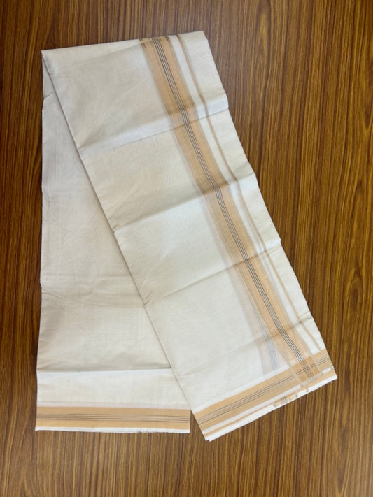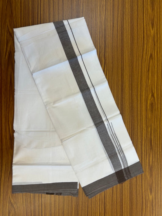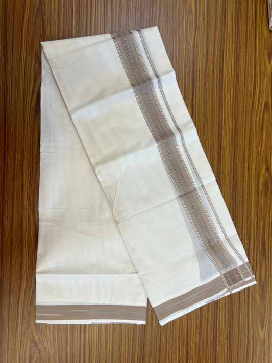 20% Discount ! Kaitharikada Balaramapuram 100% Cotton Off White Double Mundu/Dothi - 100x80- 1.75 Inch Silver Kasav Sand Brown & Black Striped Kara - 4mtr (8.5muzham)- 19 KK5279 CKS