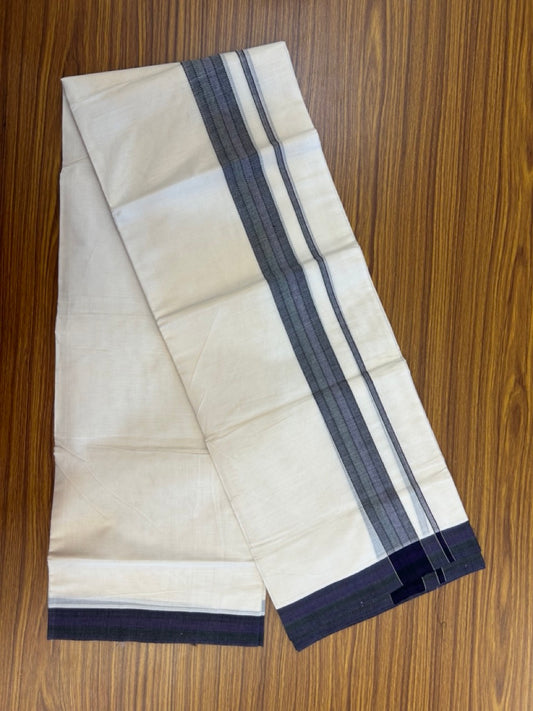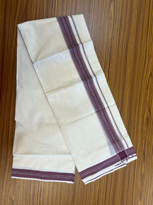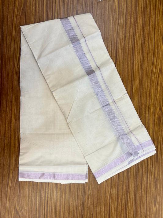 20% Discount ! Kaitharikada Balaramapuram 100% Cotton Off White Double Mundu/Dothi - 100x80- 1.75 Inch Silver Kasav Purple & Black Striped Kara - 4mtr (8.5muzham)- 18 KK5279 CKS