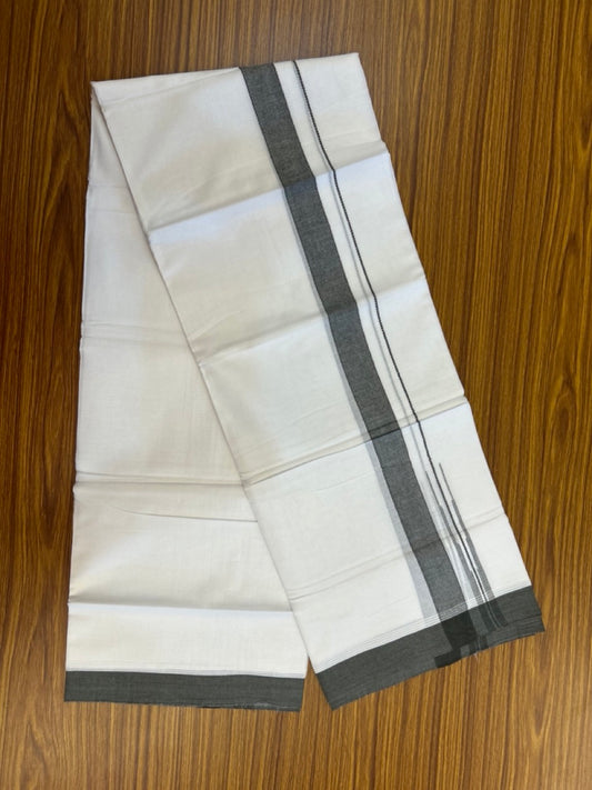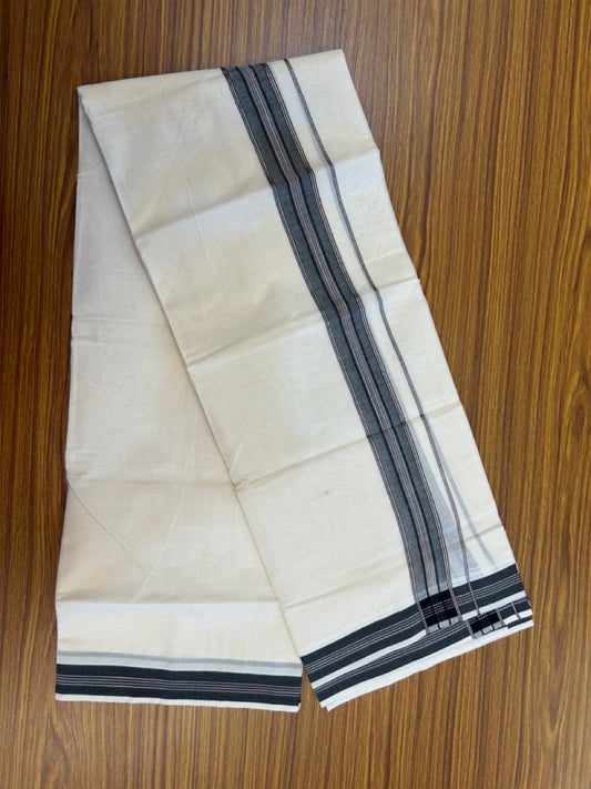 20% Discount ! Kaitharikada Balaramapuram 100% Cotton Off White Double Mundu/Dothi - 100x80- 1.75 Inch Silver Kasav Dairy Cream & Black Striped Kara - 4mtr (8.5muzham)- 15 KK5279 CKS