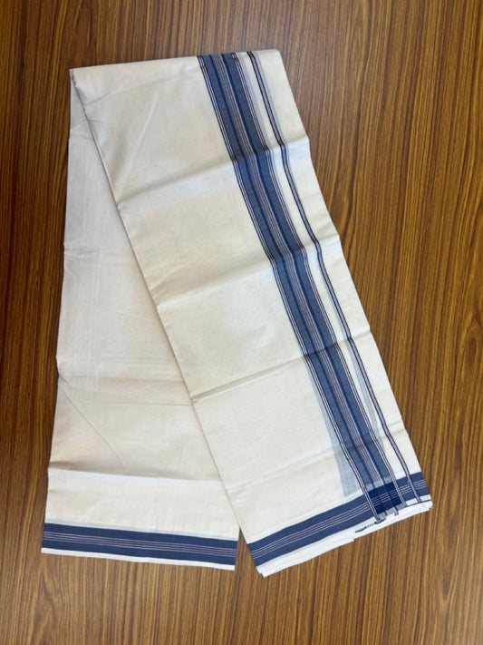 20% Discount ! Kaitharikada Balaramapuram 100% Cotton Off White Double Mundu/Dothi - 100x80- 1.75 Inch Silver Kasav Blue & Black Striped Kara - 4mtr (8.5muzham)- 16 KK5279 CKS