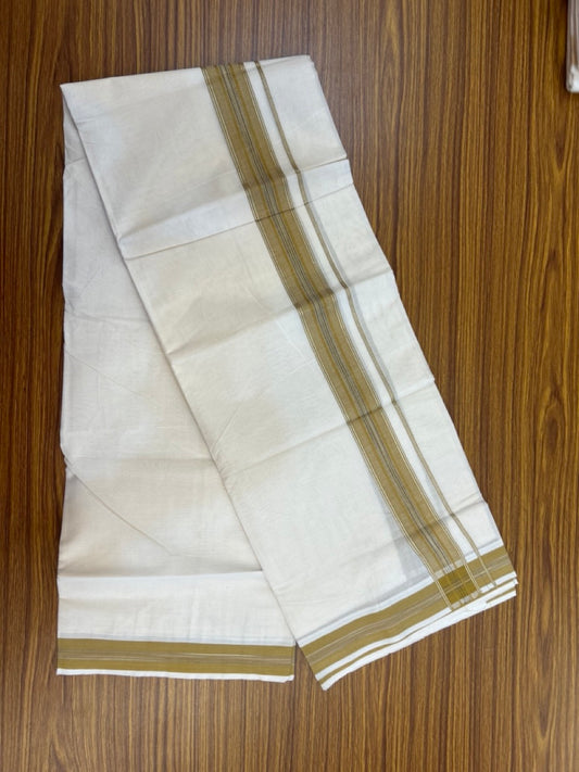 20% Discount ! Kaitharikada Balaramapuram 100% Cotton Off White Double Mundu/Dothi - 100x80- 1.75 Inch Silver Kasav Mustard Yellow & Black Striped Kara - 4mtr (8.5muzham)- 14 KK5279 CKS
