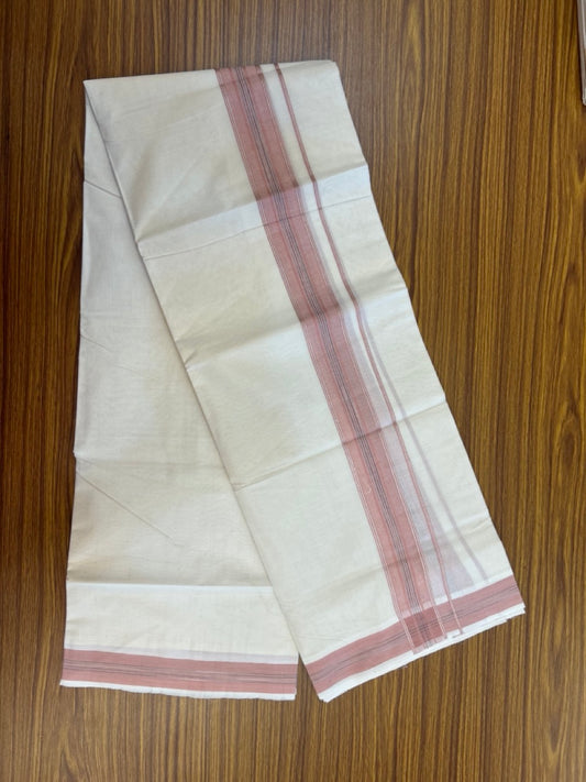 20% Discount ! Kaitharikada Balaramapuram 100% Cotton Off White Double Mundu/Dothi - 100x80- 1.75 Inch Silver Kasav Peach Pink & Black Striped Kara - 4mtr (8.5muzham)- 17 KK5279 CKS