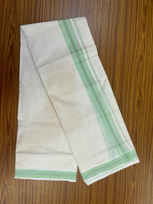 20% Discount ! Kaitharikada Balaramapuram 100% Cotton Off White Double Mundu/Dothi - 100x80- 1.5 Inch Silver Kasav Light Green & Black Striped Kara - 4mtr (8.5muzham)- 13 KK5279 CKS