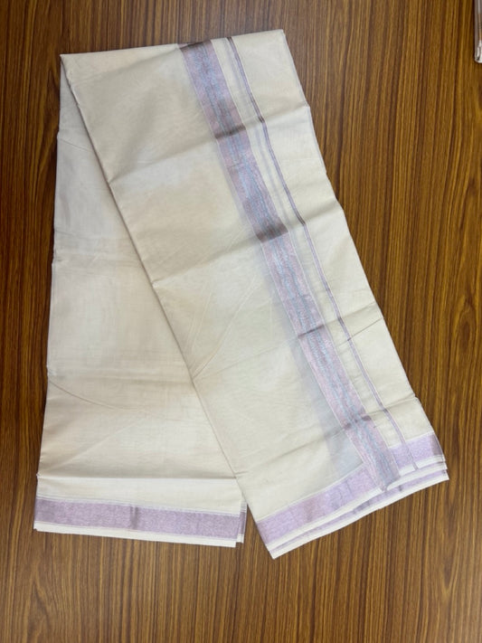 20% Discount ! Kaitharikada Balaramapuram 100% Cotton Off White Double Mundu/Dothi - 100x80- 1.5 Inch Silver Kasav & Rose Pink Kasav Striped Kara - 4mtr (8.5muzham)- 3 KK5279 CKS
