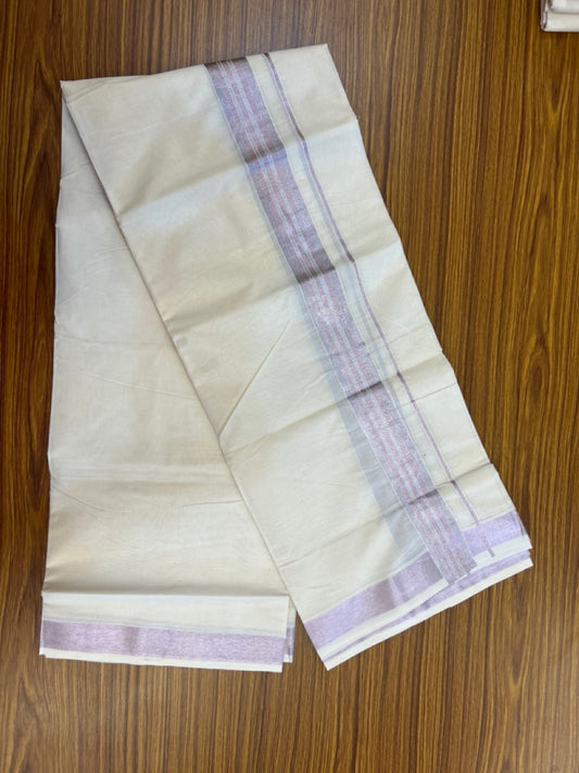20% Discount ! Kaitharikada Balaramapuram 100% Cotton Off White Double Mundu/Dothi - 100x80- 1.5 Inch Silver Kasav & Rose Pink Kasav Striped Kara - 4mtr (8.5muzham)- 4 KK5279 CKS