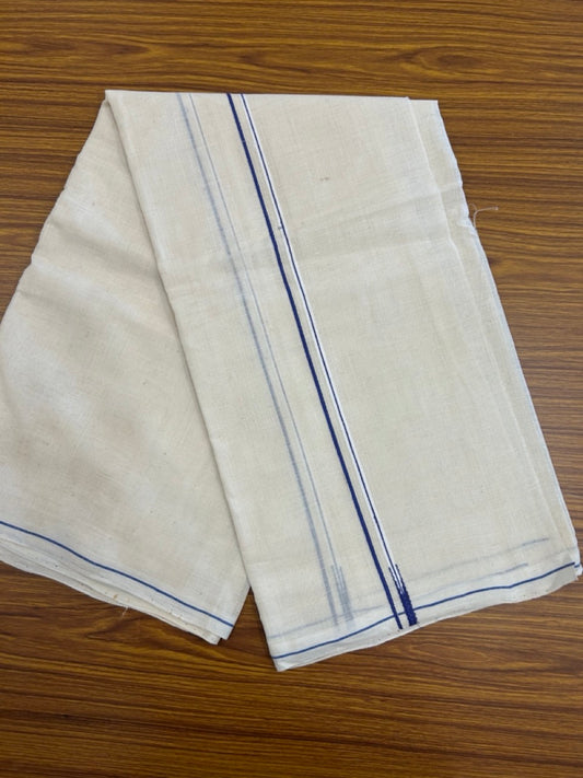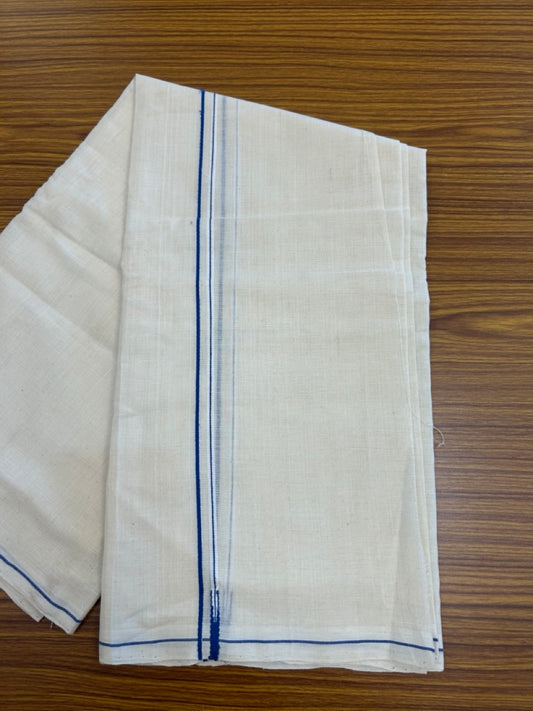 Kaitharikada Handloom Unakkupaav Balaramapuram - 100% Pure Cotton Off White (Unbleached) Neriyath - 0.5 cm Royal Blue Kara - 1 KK5277 ELA