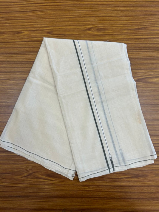 20% Discount ! Kaitharikada Balaramapuram - 100% Pure Cotton Off White - (Unbleached) Double Mund/Dhoti - 100X80 - 1.25 inch Gold Kasav & Silver Kasavu Striped Kara - 1 KK5279 CKS