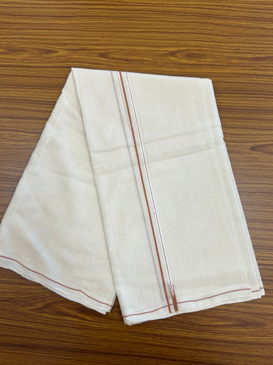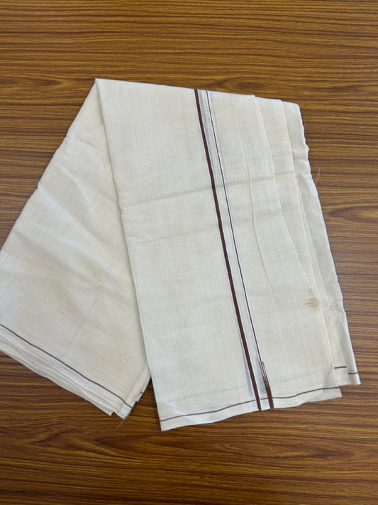 Kaitharikada Handloom Unakkupaav Balaramapuram - 100% Pure Cotton Off White (Unbleached) Neriyath - 0.5 cm Dark Brown Kara - 4 KK5277 ELA
