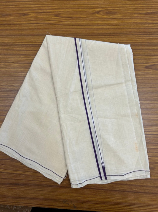 Kaitharikada Handloom Unakkupaav Balaramapuram - 100% Pure Cotton Off White (Unbleached) Neriyath - 0.5 cm Deep Violet Kara - 7 KK5277 ELA