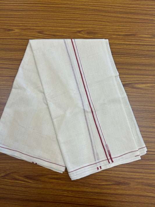 Kaitharikada Handloom Unakkupaav Balaramapuram - 100% Pure Cotton Off White (Unbleached) Neriyath - 0.5 cm Red Kara - 8 KK5277 ELA
