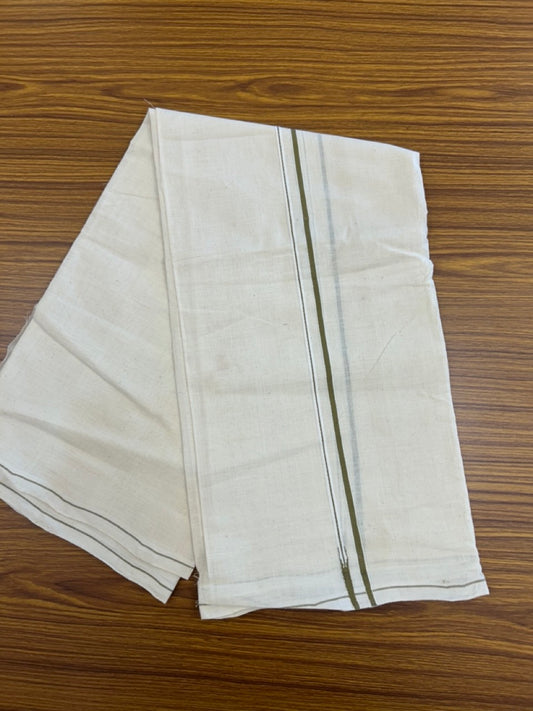 Kaitharikada Handloom Unakkupaavu Balaramapuram - 100% Pure Cotton Off White (Unbleached) Neriyath - 0.5 cm Light Olive Green Kara - 2 KK5277 ELA