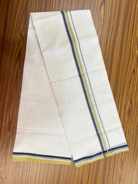 20% Discount !! KaithariKada Balaramapuram 100% Cotton Double Off white - (Unbleached) Mundu/Dhoti-100x100 -1 inch Silver Kasav Black & Mustard Yellow Striped Kara - 8 KK5274 ASH