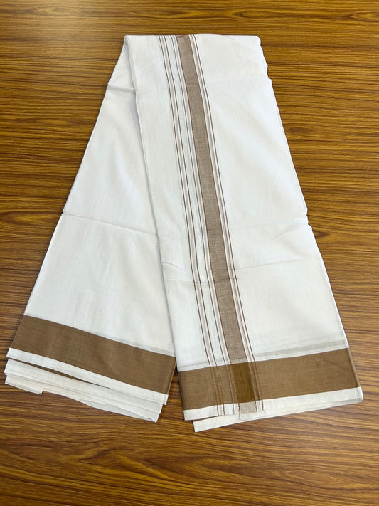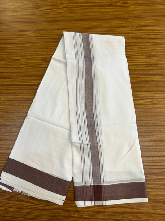 20% Discount! Kaitharikada 100% Pure Cotton Pure White - 100x80 thread - North Indian - Attached Gamcha 9x5 Dhoti - 1.75 inch Dark Brown shaded striped kara - 9 KK5275 PMC