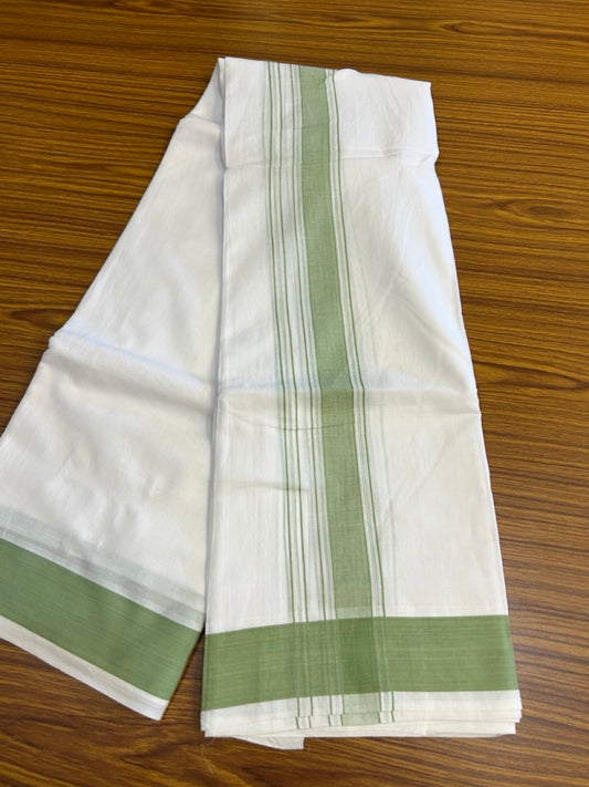 Panchakacham Dhoti - 20% Discount! KaithariKada 100% Pure Cotton Pure White - 100x80 thread - North Indian - Attached Gamcha 9x5 Dhoti - 1.75 inch Light Green shaded striped kara - 4 KK5275 PMC